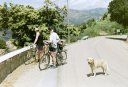 dus gaat hij met ons mee. In de beklimming, terwijl ik met 10 à 12 km/u